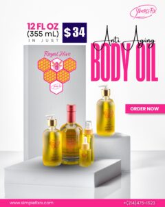 • Premium, natural skincare solutions like Royal Hive Body Oil
